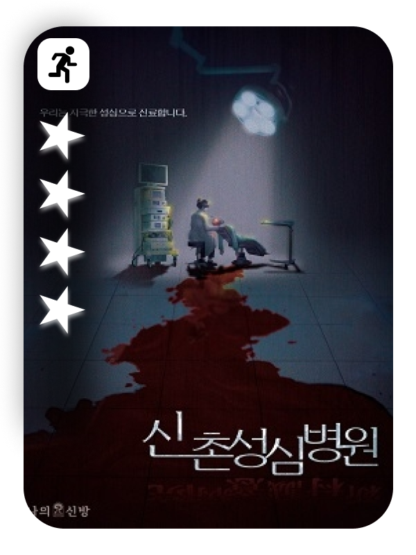앞서 위에 추천한 두 개의 테마는, 공포의 맛을 보기위한 맛보기 테마로 실제로 방탈출처럼 문제를 많이 풀지는 않는다. 물론 이 테마 <신촌성심병원>도 그런 편이지만 그래도 앞선 두 개의 테마보다는 훨씬 더 정통 공테에 가깝다. 이머시브나 분리구간, 그리고 재미있는 연출들을 모두 가지고 있으면서도 어렵지 않게 문제를 풀어낼 수 있다는 것이 이 테마의 매력이라고 할 수 있을 것이다.