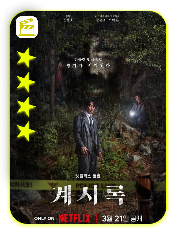 영화를 보기 시작하는 시점부터, 역시 연상호 감독이라는 생각이 들었다. 흥미로운 설정이 계속된다. 처음부터 재미있지만 점차 목사가 광기에 휩쌓이게 되는데 그 과정이 상당히 재미있다. 종교지만 오컬트도 아니고, 호러도 아니다. 그런데도 광기가 가득한 영화라고 할 수 있는 것 같다. '계시'라는 것을 어떻게 해석할 수 있느냐를 보여주는 영화가 아닐까 싶다. 내가 굉장히 좋아하는 <지옥>에서도 '고시'라는 이름의 '계시'가 나온다고 볼 수 있다. 하지만 '고시'는 직접적이지만 <계시록>에서의 '계시'는 조금 다르다. 만들어나가는 느낌이라고 할까?